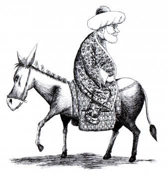 “In any case,” Nasruddin continued speaking to the students, “what usually happens is that I want to go in one direction, and this stubborn beast wants to go in the exact opposite way. So this is our compromise.”"